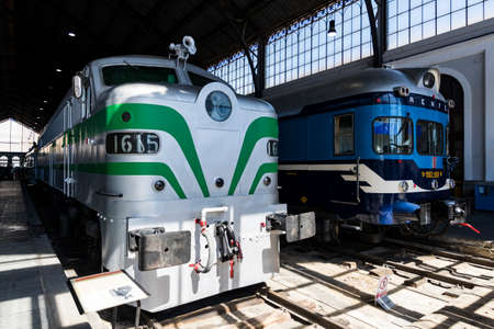 DEC 10, 2012 Saitama, JAPAN - Old locomotive train models exhibits in railway museum of Omiya.