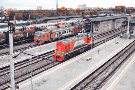 Saint Petersburg, Russia - 14 July 2019. panorama of railway tracks with freight trains