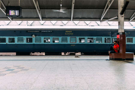 Indian people waiting for the train on platform inside Howrah Junction railway station in Kolkata, India.