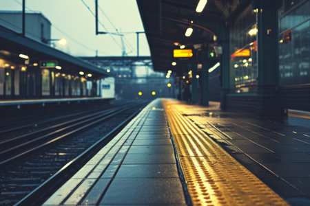 passenger platform and railway line with shallow depth of field