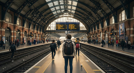 Central railway station with people.