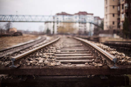 Old railroad tracks at train station, transportation infrastructure