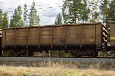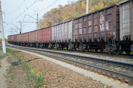 Freight transport cars on the railroad in the movement