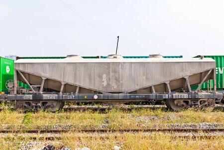 Close-ups of details of a railway carriage. Transportation of various materials over long distances.