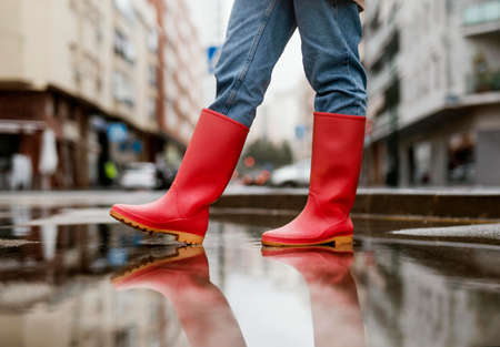 red rain boots street. High quality photo