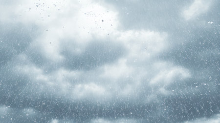 An isolated storm scene featuring dramatic white clouds and rain droplets, creating a moody and serene atmosphere. Perfect for weather and nature themes.