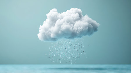 A stunning depiction of a fluffy cloud releasing rain, featuring realistic details. The image embodies the essence of weather and nature in a minimalistic style.