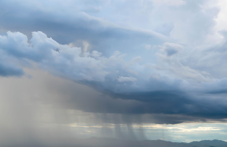 falling rain on sky with clouds - beautiful weather backdrop - photo of nature