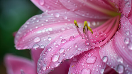Pink lily with raindrops on the petals, close-up