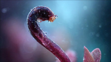 Stunning composition of delicate transparent eels on a soft pink backdrop. The water droplets enhance their graceful form, showcasing nature's beauty.