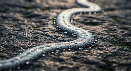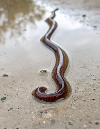Close-up macro shot of an earthworm on wet soil with water droplets Detailed texture natural lighting ecological and biological concept