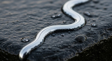 Leech emerging from damp dirt after rainfall nature close-up dramatic lighting wet environment