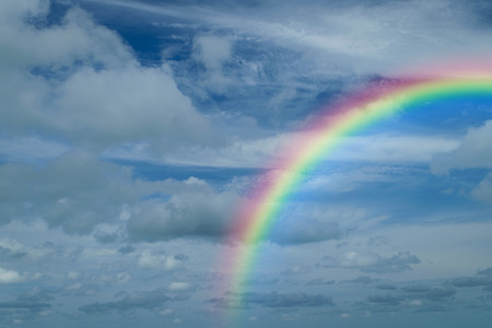 Nature cloudscape with blue sky and white cloud with rainbow