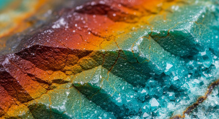 A close-up view of a rock displaying a multitude of vibrant colors. This image can be used to add a pop of color to any design or to represent the beauty and diversity of nature.
