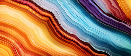 Vivid colors and intricate designs of agate create an abstract artwork highlighting the natural wonders of geology. Layers of blues, oranges, and browns merge seamlessly.