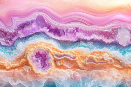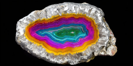 Explore the intricate beauty of a colorful geode with stunning textures and vibrant layers. Perfect for nature lovers and design enthusiasts alike.