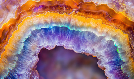 A stunning close-up view of a vibrant agate geode showcasing colorful layers and intricate textures. Perfect for natural backgrounds or artistic designs.