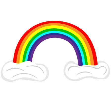Isolated on white rainbow and clouds, vector, cartoon.