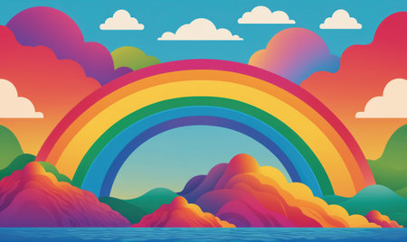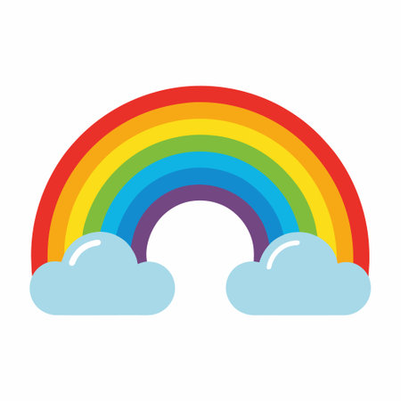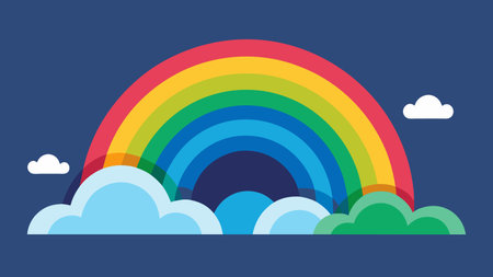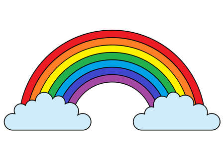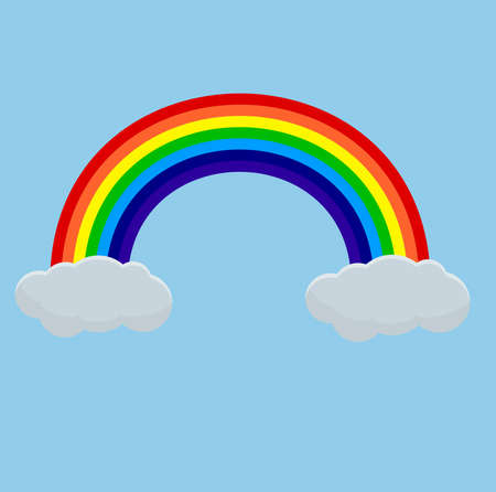 vector illustration showing wonderful colored rainbow with light blue clouds at the ends