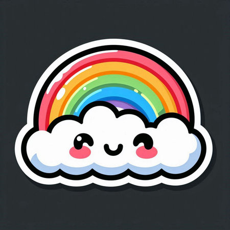 Smiling Cloud Unfurling a Vibrant Rainbow in the Sky