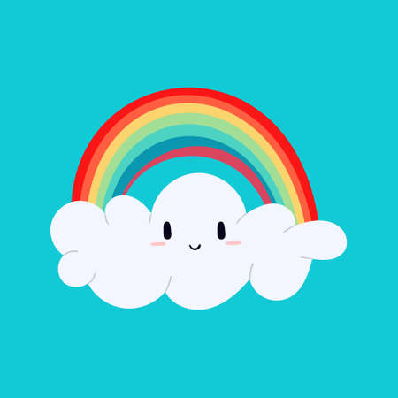 Rainbow and cloud. Cute cartoon character. Vector illustration.