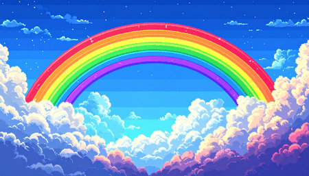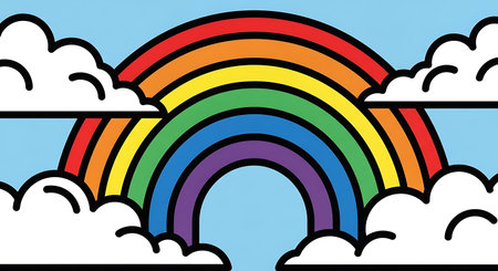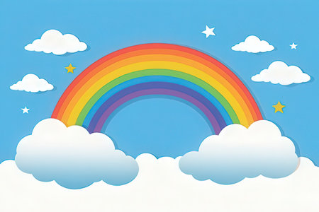 Blue sky with colorful rainbow illustration