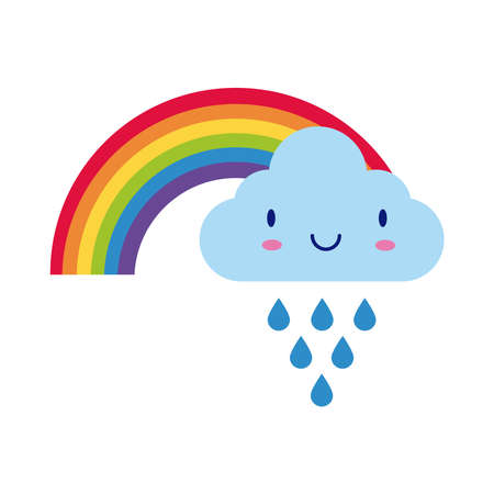 cute rainbow weather with cloud rainy kawaii flat style icon vector illustration design