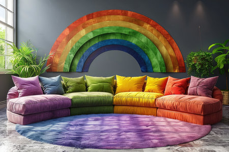 Homestead of Unity: The Intimate Dwellings of Gay Partners, Marked by a Comfy Sofa and Rainbow LGBT Flag, Symbolizing Love, Acceptance, and Identity