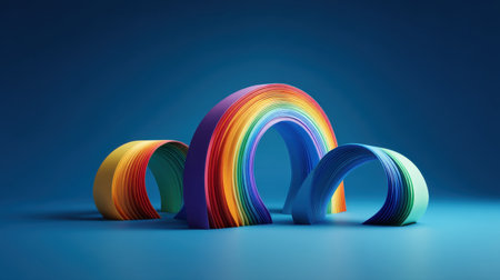 A stunning display of colorful paper arches creates a whimsical and vibrant scene, set against a deep blue background. Perfect for creative projects or inspiration.