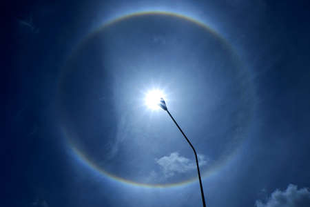 Sun with circular rainbow sun halo occurring due to ice crystals in atmosphere in thai