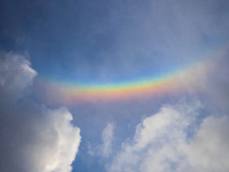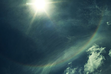 sun corona rainbow clouds and blue sky background , Circumscribed halo