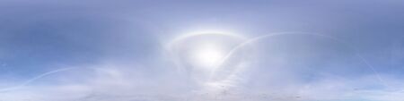 clear blue sky with halo sun. Seamless hdri panorama 360 degrees angle view with zenith for use in 3d graphics or game development as sky dome or edit drone shot