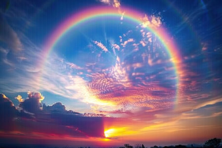 sun halo creating a colorful ring in the sky, created with generative ai