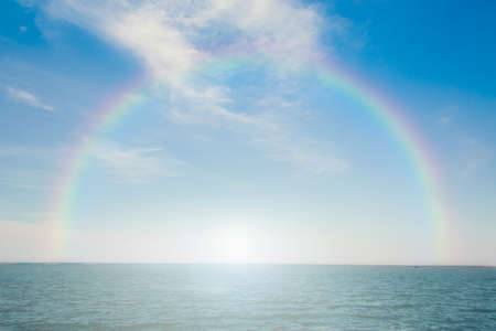 Tropical sea and blue sky with rainbow background