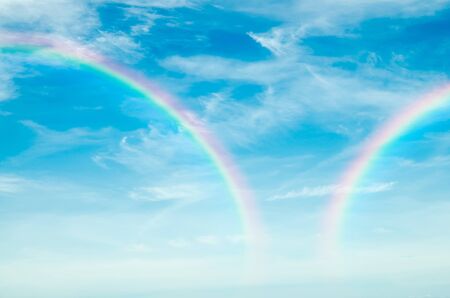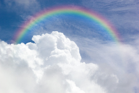 Nature cloudscape with blue sky and white cloud with rainbow