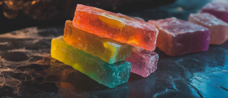 Sweet Candied Fruit Jelly on Dark Background Studio Photo