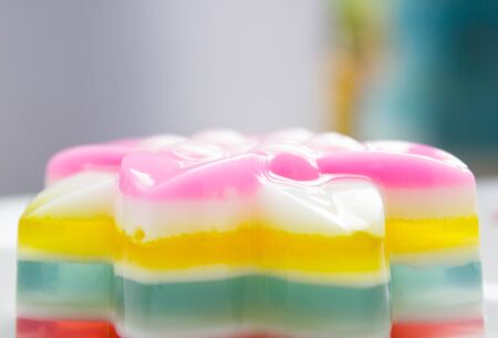 rainbow jelly in flower shape : Thai traditional dessert made from sugar, gelatin and coconut milk