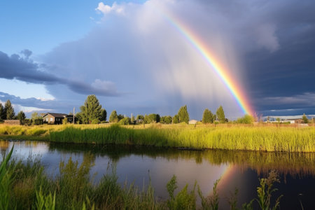 a rainbow appearing after a summer thunderstorm, created with generative ai