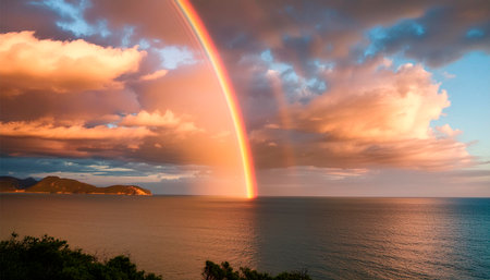 Rainbow over the sea at sunset