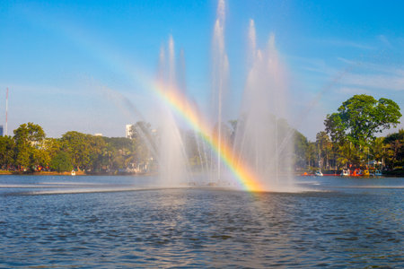 Fountain makes a rainbow in Ibirapuera Park, Sao Paulo - Brazil