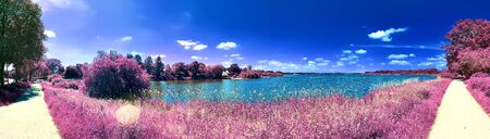 Beautiful and colorful fantasy landscape in an asian purple infrared photo style