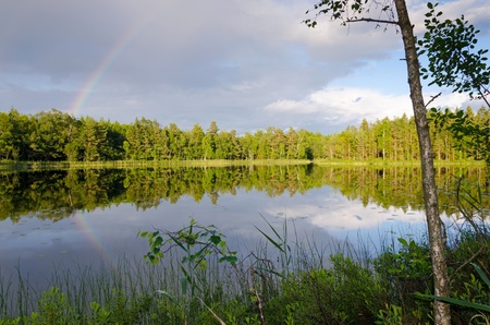 Swedish lake with rainbow