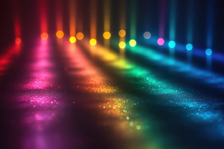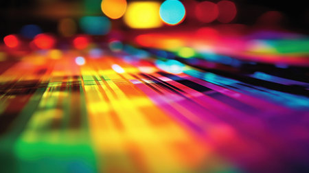 Vibrant abstract background with colorful rainbow light and bokeh effects