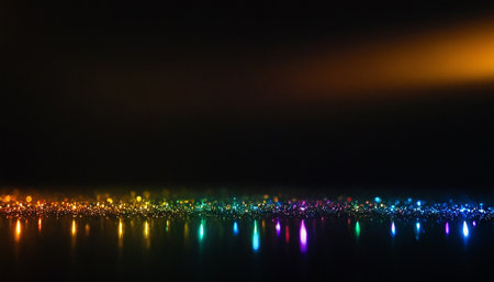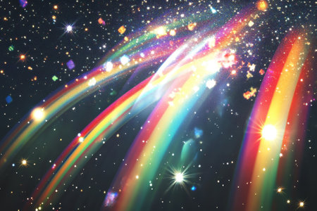 rainbow and glittering particles on a dark background with space for text