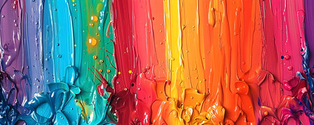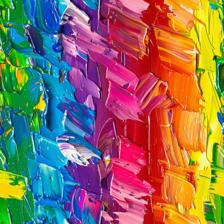Thick strokes of vibrant paint in various colors create a lively palette perfect for artistic expression. The rich hues blend harmoniously, inviting creativity and inspiration.