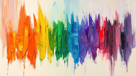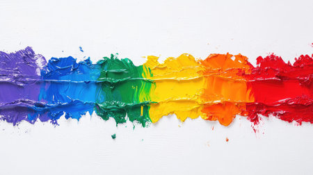 A stunning display of vibrant rainbow paint strokes on a clean white canvas, showcasing the beauty of creativity and artistic expression.