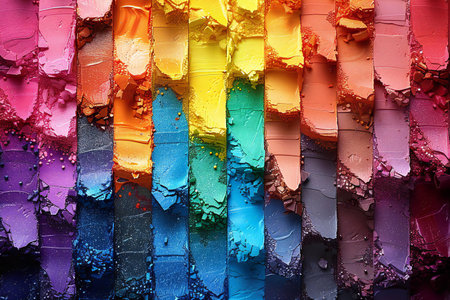 Vibrant colors in a row, crushed particle palette, shiny still life generated by artificial intelligence