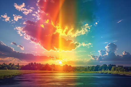 Rainbow in the sky as a background. The spectrum of the rays of sunlight in the atmosphere.