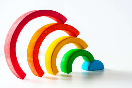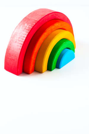 Rainbow, multicolored wooden eco toy. Isolated on white