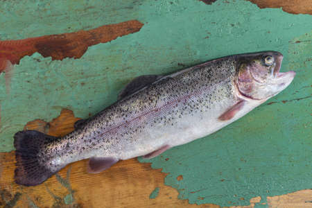 fresh, Trout fishing, river trout,rainbow rout, on old white old board
